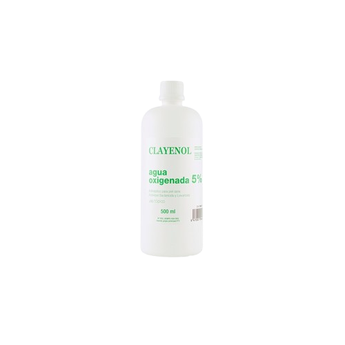 Agua Oxigenada 5% Clayenol 500 ml. Se recomienda humedecer una gasa o algodón. Aplicar, con las manos limpias, sobre la zona a tratar y dejar durante 1 minuto.