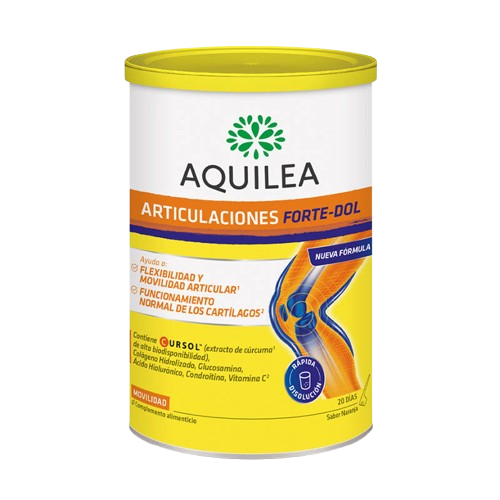 Aquilea Articulaciones Forte-Dol está formado por cúrcula, condroitina, glucosamina, colágeno, ácido hialurónico y vitamina C.