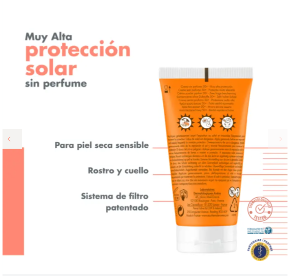 Muy alta protección solar para la piel seca y sensible del rostro.