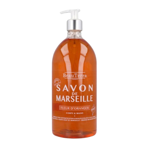 Beauterra Jabón Marseille Flor de Naranja 1 Litro. Los jabones de Marsella de Bauterra están elaborados de manera tradicional, cociendo los aceites vegetales en un caldero por horas, bajo la supervisión de un Maestro Jabonero.