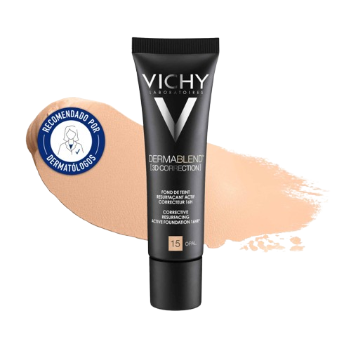 Vichy Dermablend 3D Corrección Fondo de Maquillaje Corrector 16 horas nº 15 Opal 30 ml. Farmavázquez recomienda limpiar completamente la piel y aplicar tu hidratante habitual antes del maquillaje.