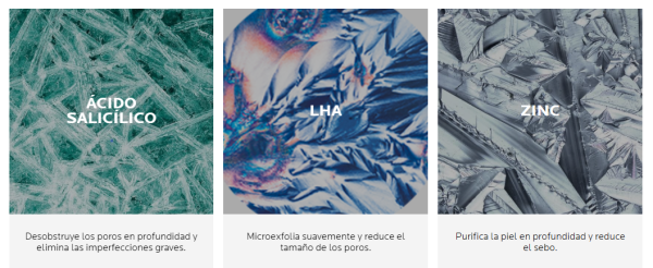 - LHA: Microexfolia suavemente y reduce el tamaño de los poros.