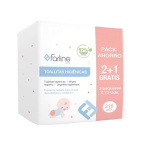 Pack Farline Toallitas Higiénicas Bebé aporta la máxima suavidad mientras limpia de manera delicada a la vez que respeta la piel del bebé. Contiene un 97% de ingredientes de origen natural.