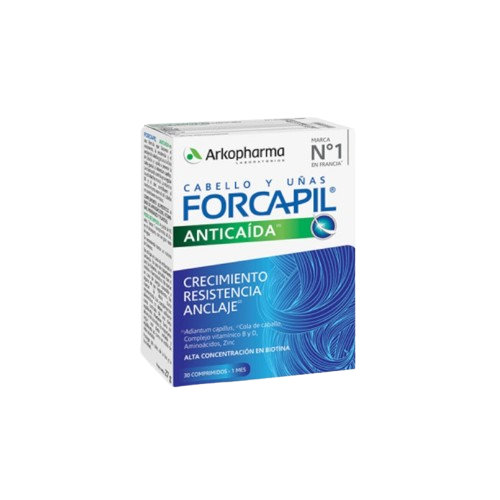 Arkopharma Forcapil Anticaída 30 Comprimidos. Complemento perfecto para recuperar la fuerza y la vitalidad del cabello. Recomendado para hombre y mujer. Es perfecto para periodos de estrés, menopausia, después del embarazo, cambios de estación, etc.