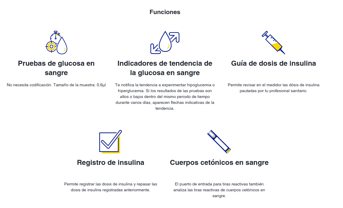 La pantalla muestra los resultados de la prueba con claridad. El resultado mostrado puede ir acompañado de una flecha roja o amarilla, continua o intermitente, dependiendo de si el nivel de glucosa es demasiado bajo o demasiado alto en comparación con los valores esperados. Además, permite registrar fácilmente hasta 1000 resultados.
