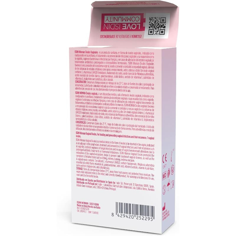 Isdin Woman Óvulos Vaginales es útil para quienes desean mantener el equilibrio del ecosistema vaginal. Ayuda a combatir la sequedad y los estados irritativos, gracias a ingredientes como el hialuronato de sodio y los aceites esenciales de Melaleuca alternifolia y tomillo blanco. Estos componentes trabajan en conjunto para ofrecer un cuidado integral.