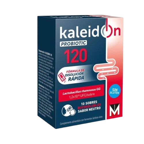 Kaleidon 120 es un complemento alimenticio formulado a base de Lactobacillus rhamnosus. Generalmente se utiliza como probiótico. También se utiliza para prevenir y tratar los cólicos en los más pequeños mientras ingieren antibióticos.