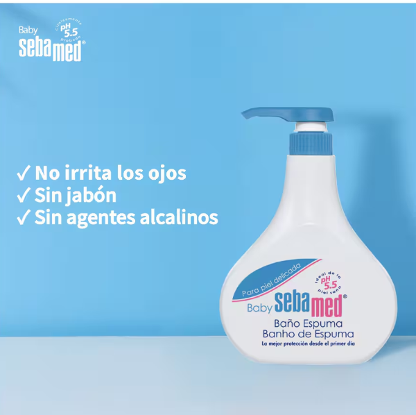 Espuma de Baño Baby Sebamed es un gel de espuma diseñado para el baño diario de bebés y niños. Tiene un pH de 5.5 que contribuye al desarrollo del manto ácido protector de la piel. Este producto está dermatológicamente testado y es adecuado para la higiene de la piel infantil. Contiene extractos de plantas medicinales que calman, hidratan y protegen la piel de la inflamación y la irritación. Su fórmula incluye un complejo de tensioactivos extra suaves que aseguran una limpieza cuidadosa sin causar deshidratación. Puede utilizarse para bañar al bebé una vez que ha caído el cordón umbilical. No contiene compuestos nocivos como nitro-almizclados, formaldehído, nitrosaminas ni dioxano.