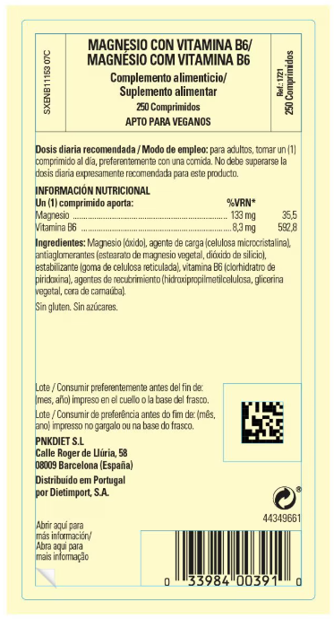 - Reducción del cansancio y la fatiga – El magnesio y la vitamina B6 contribuyen al metabolismo energético normal y ayudan a reducir el cansancio y la fatiga.