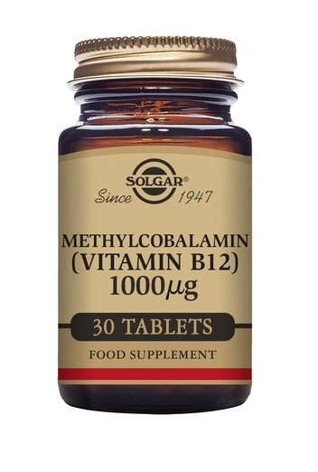 La Metilcobalamina (Vitamina B12) de Solgar «lista para usar por el organismo» en comprimidos sublinguales-masticables contiene 1000 μg de esta forma natural de vitamina B12. Desempeña distintas funciones en el organismo, como reducir el cansancio, ayudar a liberar la energía de los alimentos y estimular la vitalidad.