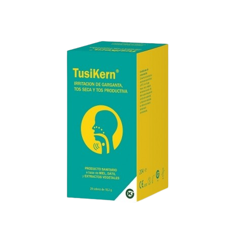 Kern Pharma Tusikern tiene componentes activos que actúan como calmantes de la irritación de garganta, así como de la tos seca y la tos productiva. También cumple una función protectora de las vías respiratorias altas, al evitar que algún microorganismo o alérgeno ingrese en la garganta y provoque síntomas molestos.