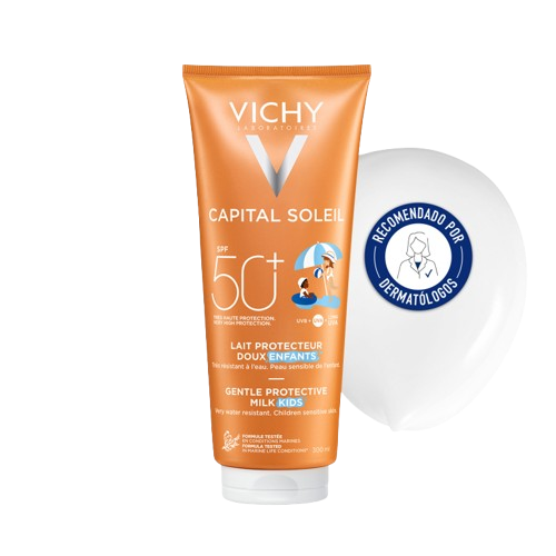 Vichy Capital Soleil Leche Solar Infantil spf50 300 ml. Leche solar de muy alta protección formulada para el cuidado y protección de la piel de los más pequeños.
