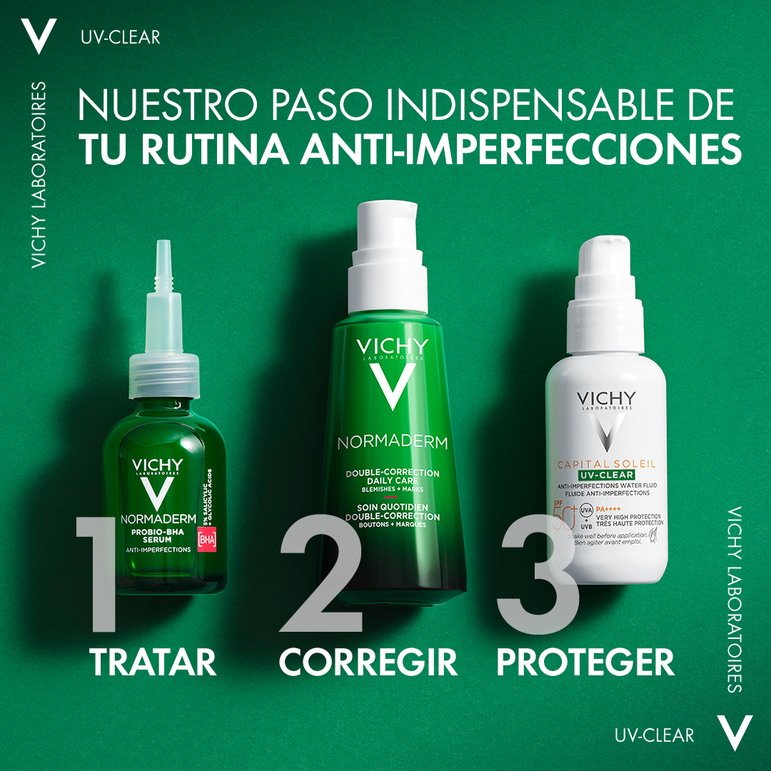 Vichy Capital Soleil Water Fluid Uv-Clear SPF50 40 Ml. Fotoprotector antiimperfecciones. Ideal para pieles mixtas, grasas o con tendencia acneica gracias a su formulación y textura fluida.