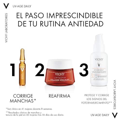 Vichy Capital Soleil UV-AGE Daily SPF50+ Fluido 40 ml. Protector solar diario para el rostro. Acción anti-edad.